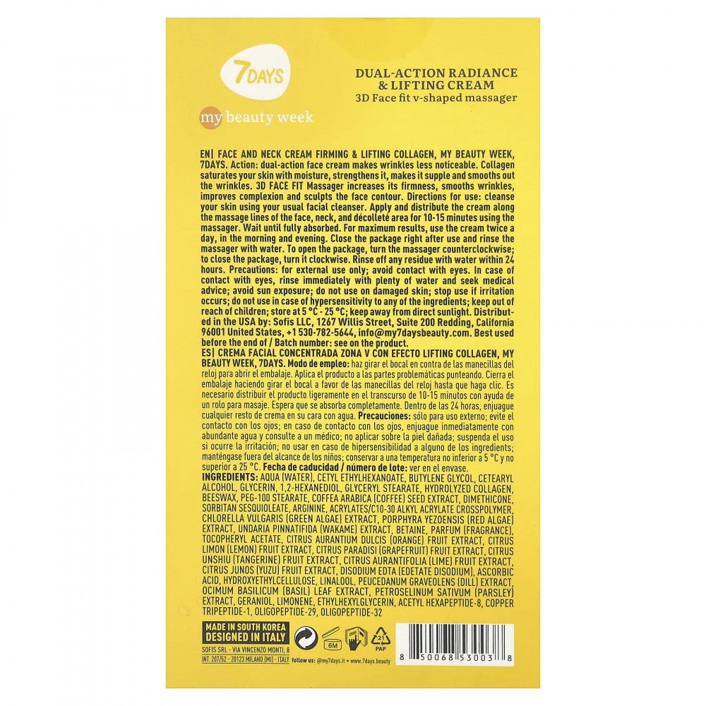 Действие: крем для лица двойного действия делает морщины менее заметными.Коллаген насыщает кожу влагой, укрепляет ее, делает эластичной и разглаживает морщины.Массажер 3D Face Fit повышает упругость кожи, разглаживает морщины, улучшает цвет лица и повторяет контуры лица.