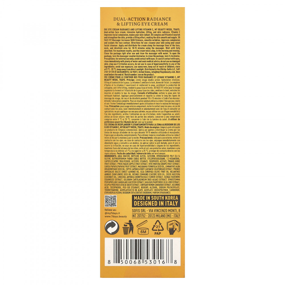 Интенсивное увлажнение, подтяжка и сияние кожи. Витамин С улучшает цвет лица, делает кожу сияющей. Комплекс масел и витамин Е питают и укрепляют кожу, обеспечивают эффект подтяжки, делая кожу гладкой и эластичной. Массажер 3D FACE FIT повышает упругость КОЖИ, разглаживает морщины, улучшает цвет лица и контурирует его.