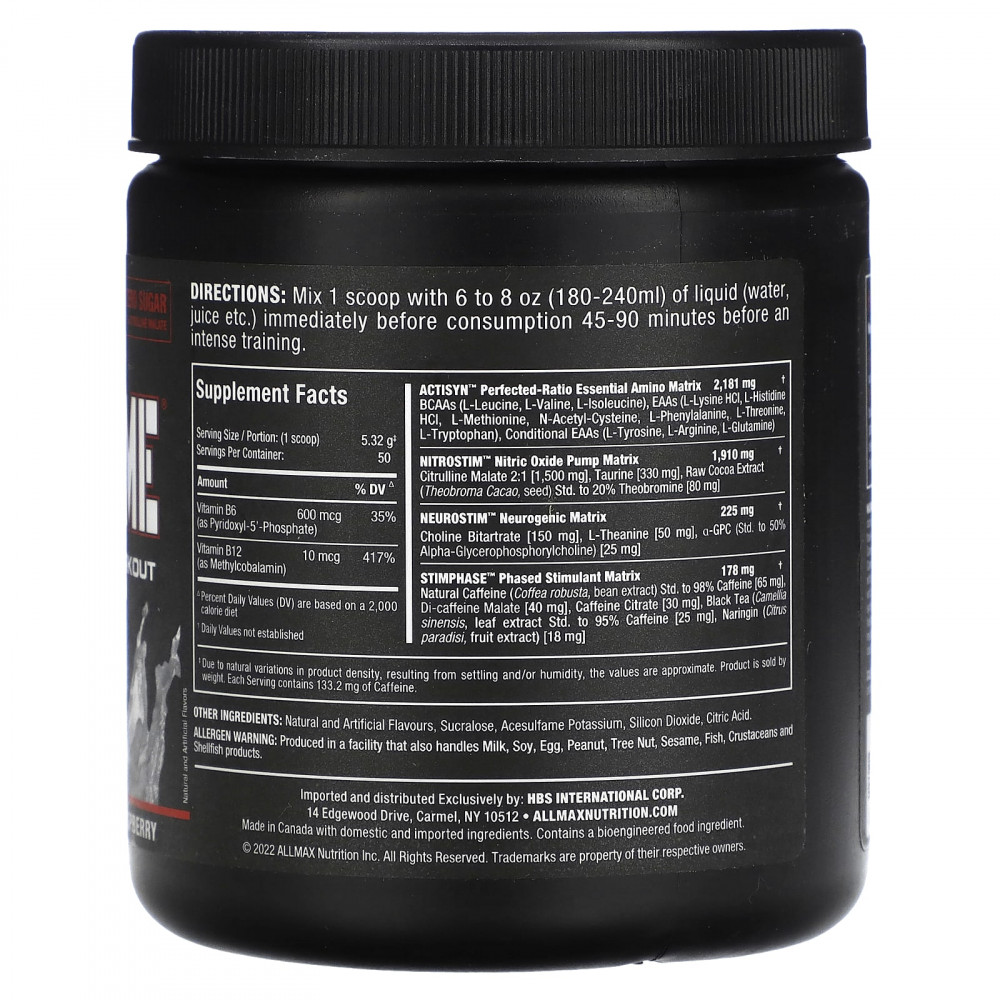 1) Энергия - Stimphase ™ 4 уникальных формы кофеина для экстремальной, устойчивой энергии, которой хватит на всю тренировку. * 2) Mental Focus - Neurostim ™, холин для повышения когнитивных функций и альфа-ГФХ для лазерной фокусировки. 3) Помпа - Nitrostim ™ Более эффективная форма цитруллина малата (2 к 1) по сравнению с другими предтренировочными комплексами для увеличения объема крови и безумных вен, которые привлекают внимание в тренажерном зале. * 4) Сила мышц - Actisyn ™ Более эффективен, чем стандартный протеин Потому что все 9 незаменимых (и 4 условно незаменимых) аминокислоты дозируются в определенном соотношении, разработанном для вашего тела для наращивания мышечной массы. Эти аминокислоты незаменимы, потому что они не могут быть синтезированы вашим организмом, как другие аминокислоты. Если вашему организму не хватает любого из этих аминокислот, рост мышечной массы будет ограничен.