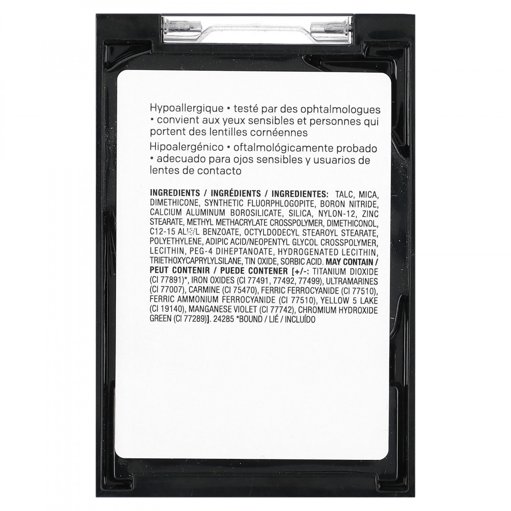 Тальк, слюда, диметикон, синтетический фторфлогопит, нитрид бора, кальций алюминий боросиликат, диоксид кремния, нейлон-12, стеарат цинка, метил метакрилат кроссполимер, диметиконол, c12-15 alis/л бензоата, октилдодецил стеароил стеарат, полиэтилен, адипиновая кислота/неопентилгликоль кроссполимер, лецитин, ПЭГ-4 дигептаноат, гидрогенизированный лецитин, триэтоксикаприлилсилан, оксид олова, сорбиновая кислота.