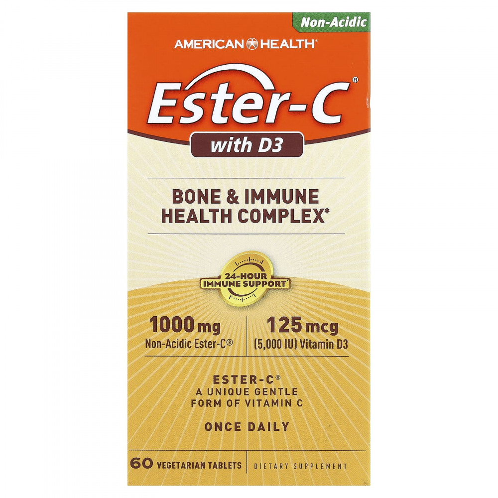 Сегодня витамин D считается более важным, чем когда-либо. Витамин D3, более эффективная и биодоступная форма по сравнению с витамином D2, играет активную роль в усвоении кальция и фосфора, необходимых для здоровья костей. Беспокоясь о вреде длительного пребывания на солнце, многие из нас не получают необходимый нам витамин D от естественного солнечного света. Комплекс некислого Ester-C® для здоровья костей и иммунной системы с D3 сочетает в себе 24-часовую иммунную поддержку благодаря pH-нейтральному витамину C Ester-C® и высокоэффективный (5000 МЕ) витамин D3 в формуле для приема один раз в день. Ester-C® с D3 обеспечивает более чем в 6 раз рекомендуемый дневной уровень витамина D в форме, которая естественным образом вырабатывается организмом.