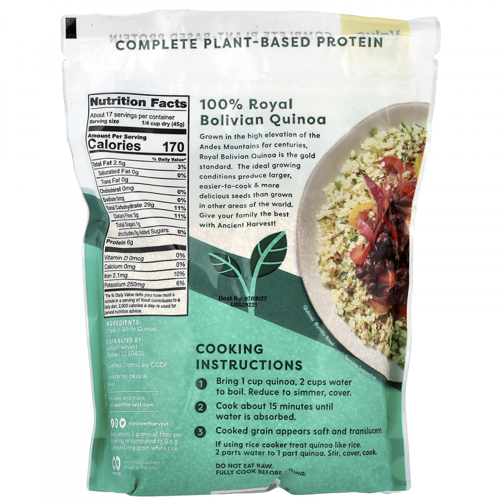 Королевское боливийское киноа, которое выращивают на возвышенностях Анд, на протяжении веков, является золотым стандартом. В идеальных условиях выращивания производятся более крупные, простые в приготовлении и более вкусные семена, чем в других регионах мира. Подарите своей семье все самое лучшее с Ancient Harvest!