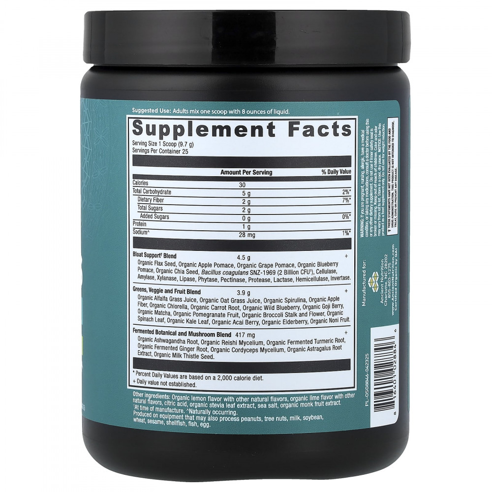 Эта органическая смесь суперфудов с более гладкой текстурой и освежающим вкусом содержит подщелачивающую зелень, питательные фрукты, ферментированные и адаптогенные травы, пробиотики и ферменты. Разработано для поддержки здоровья пищеварительной системы, уменьшения эпизодического вздутия живота и улучшения энергетического обмена. Это ежедневный рацион в одной мерной ложке.