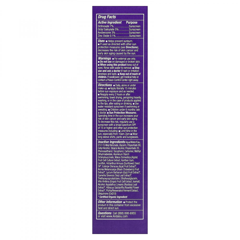 | Вспомогательные ингредиенты: вода, c12-15 алкил бензоат, глицерин, полисорбат 80, цетиловый спирт, стеариловый спирт, полисорбат 20, феноксиэтанол, токоферол, карбомер, метил дигидроабиетат, алюминий крахмал октенилсукцинат, экстракт культуры клеток плодов яблони домашней (Malus domestica), ксантановая камедь, лецитин, масло семян подсолнечника (Helianthus annuus)*, экстракт плодов асаи (Euterpe oleracea)*, экстракт плодов аронии (Aronia melanocarpa)*, экстракт плодов годжи (Lycium barbarum)*, экстракт листьев чая (Camellia sinensis)*, триэтоксикаприлилсилан, этилгексилглицерин, экстракт клеток плодов винограда (Vitis vinifera), изомальт, спирт, экстракт листьев ройбуша (Aspalathus linearis)*, экстракт цветков розеллы (Hibiscus sabdariffa)*, экстракт фермента пихии/ресвератрола, убихинон (коэнзим Q10). * Сертифицированный органический ингредиент | |
