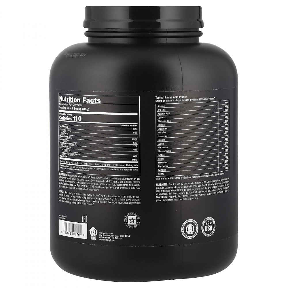 Смесь сывороточного протеина Animal 100% Whey Protein™ [концентрат сывороточного протеина (подсолнечный или соевый лецитин), изолят сывороточного протеина (лецитин)], какао (обработанное щёлочью), натуральные и искусственные ароматизаторы, смесь камеди (целлюлозная камедь, ксантановая камедь, каррагинан), хлорид натрия, ацесульфам калия, сукралоза.