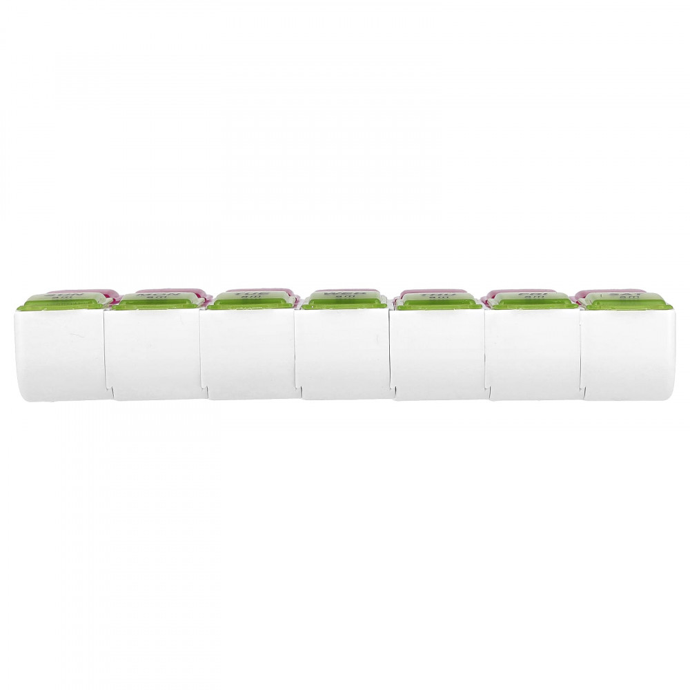 Не пропускайте прием препаратов благодаря этому простому в использовании съемному органайзеру для таблеток, разработанному для обеспечения полной гибкости. Каждое отделение блокируется для формирования капсул на неделю или отсоединяется для отдельных дней. Застегивающиеся крышки плотно прилегают и обеспечивают безопасность приема препаратов. Идеально подходит для тех, кто ежедневно принимает лекарства или витамины.