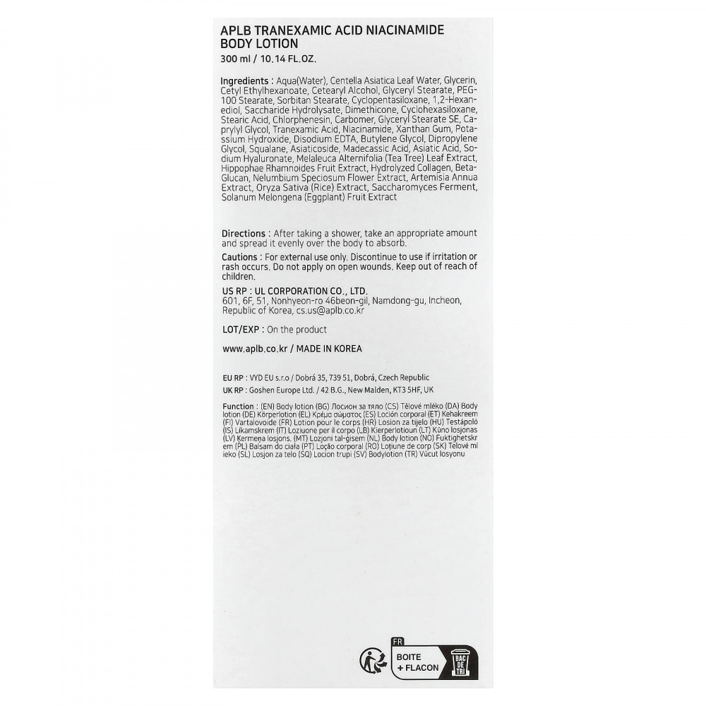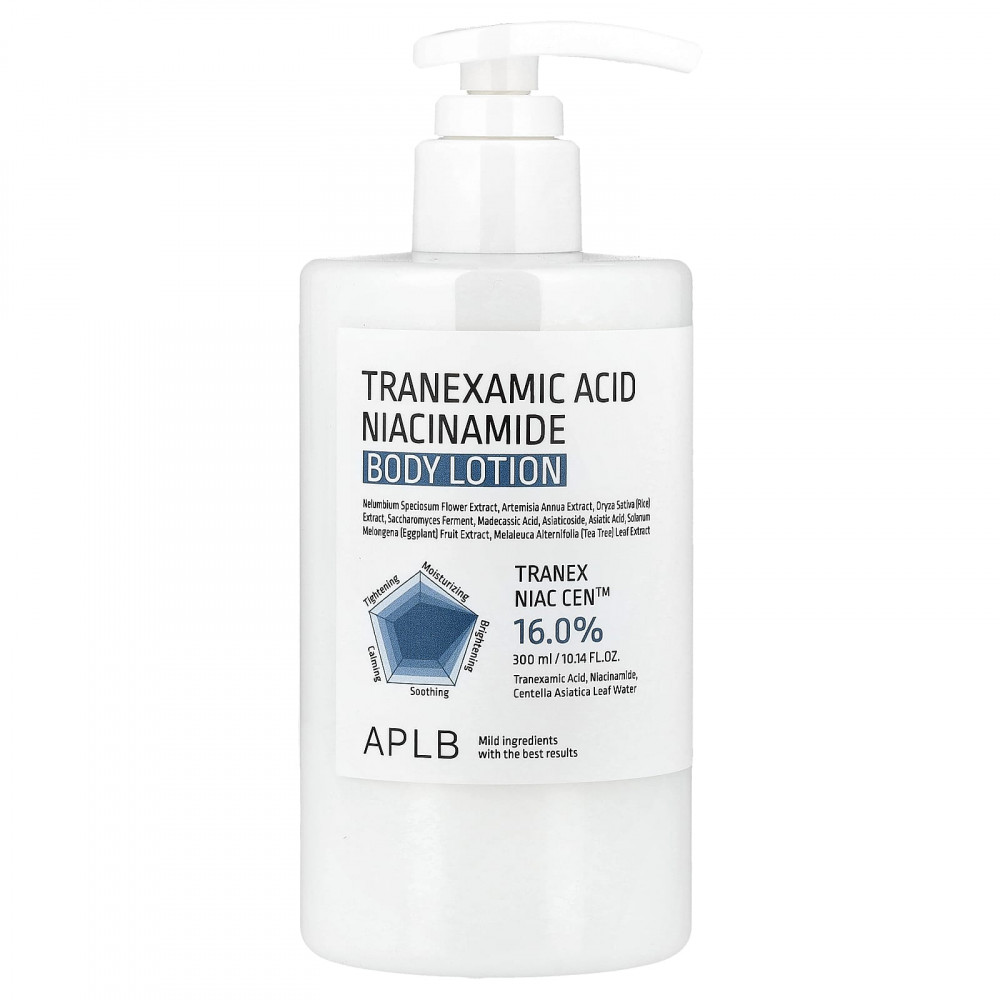 Лосьон для тела, содержащий транексамовую кислоту и ниацинамид, восстанавливает свежую влагу и успокаивает сухую кожу. Обогащен центеллой азиатской, успокаивающей раздраженную кожу.