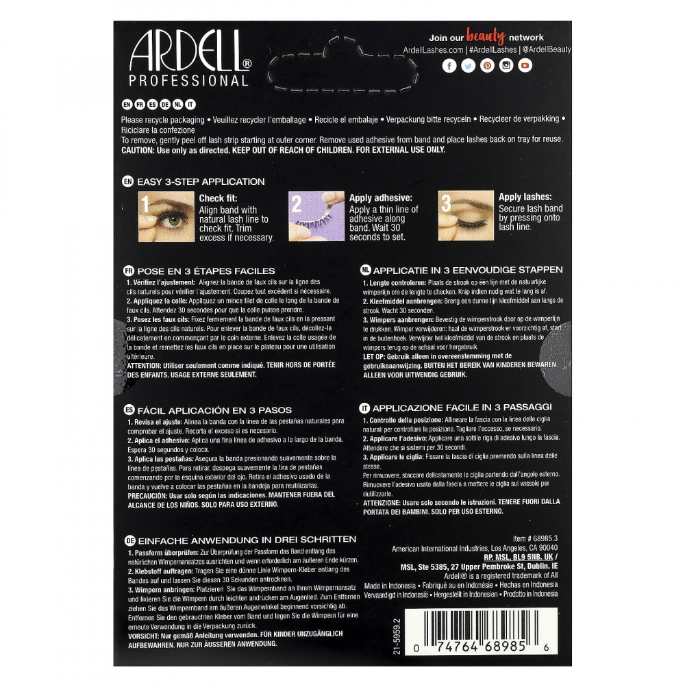 Так свободно и естественно, что вы забудете о том, что надели фальшивую одежду! Ресницы Ardell Natural 105 - это именно то, что вам нужно для создания ощущения «ваши, но лучше». Имеет умеренно расклешенные ресницы, что позволяет легко создать забавный, кокетливый шарм для кошачьих глаз! Ресницы идеальной длины обеспечивают легкий объем ресниц, а волокна ресниц сложены крест-накрест. Добавьте дополнительную текстуру вашим натуральным ресницам без ощущения тяжести и ошеломления. Natural 105 от Ardell может стать вашей новой страстью.