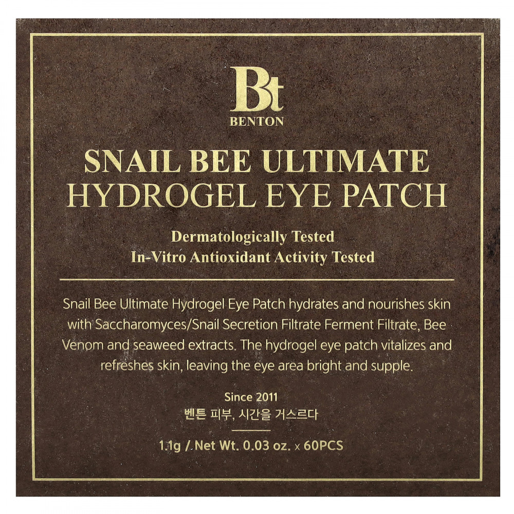 Гидрогелевые патчи для глаз Snail Bee Ultimate увлажняют и питают кожу благодаря фильтрату фермента сахаромицетов/секреции улиток, пчелиному яду и экстрактам морских водорослей. Гидрогелевые патчи для глаз оживляют и освежают кожу, делая ее сияющей и эластичной.