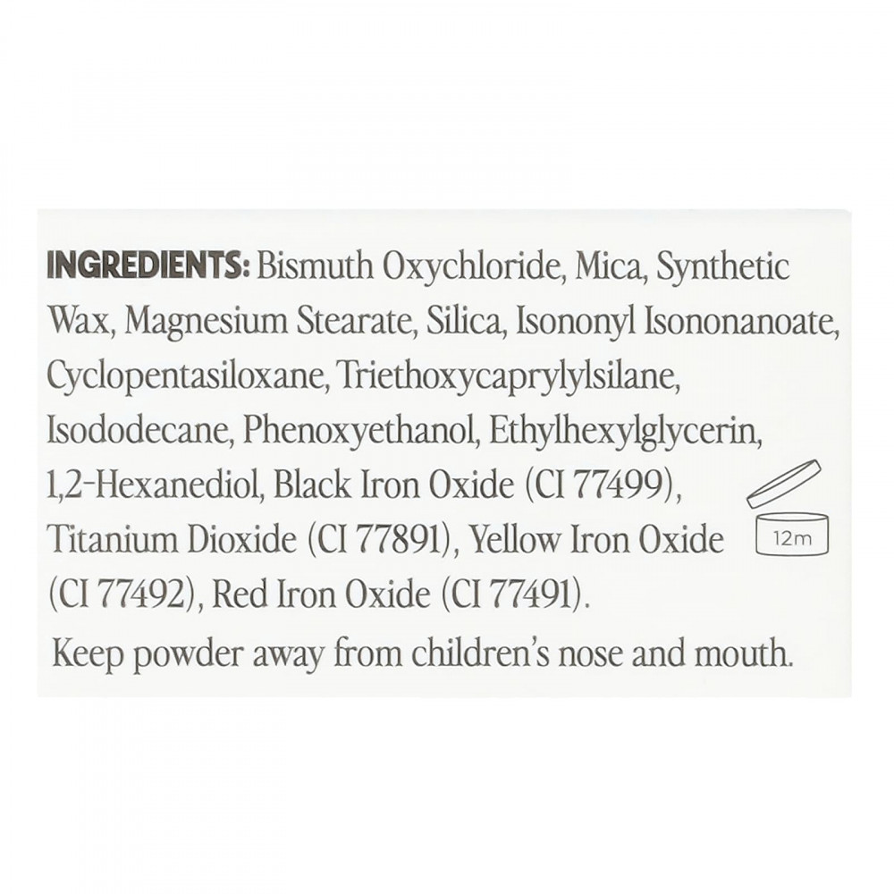 Оксихлорид висмута, слюда, синтетический воск, стеарат магния, диоксид кремния, изононил изононаноат, циклопентасилоксан, триэтоксикаприлилсилан, изододекан, феноксиэтанол, этилгексилглицерин, 1,2-гександиол, черный оксид железа (CI 77499), диоксид титана (CI 77891), желтый оксид железа (CI 77492), красный оксид железа (CI 77491).