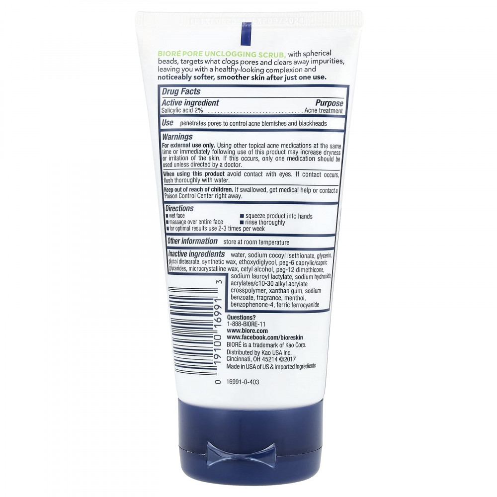 Скраб для очищения пор от Bioré со сферическими шариками удаляет загрязнения, забивая поры, обеспечивая здоровый цвет лица и заметно более мягкую и гладкую кожу уже после первого использования.