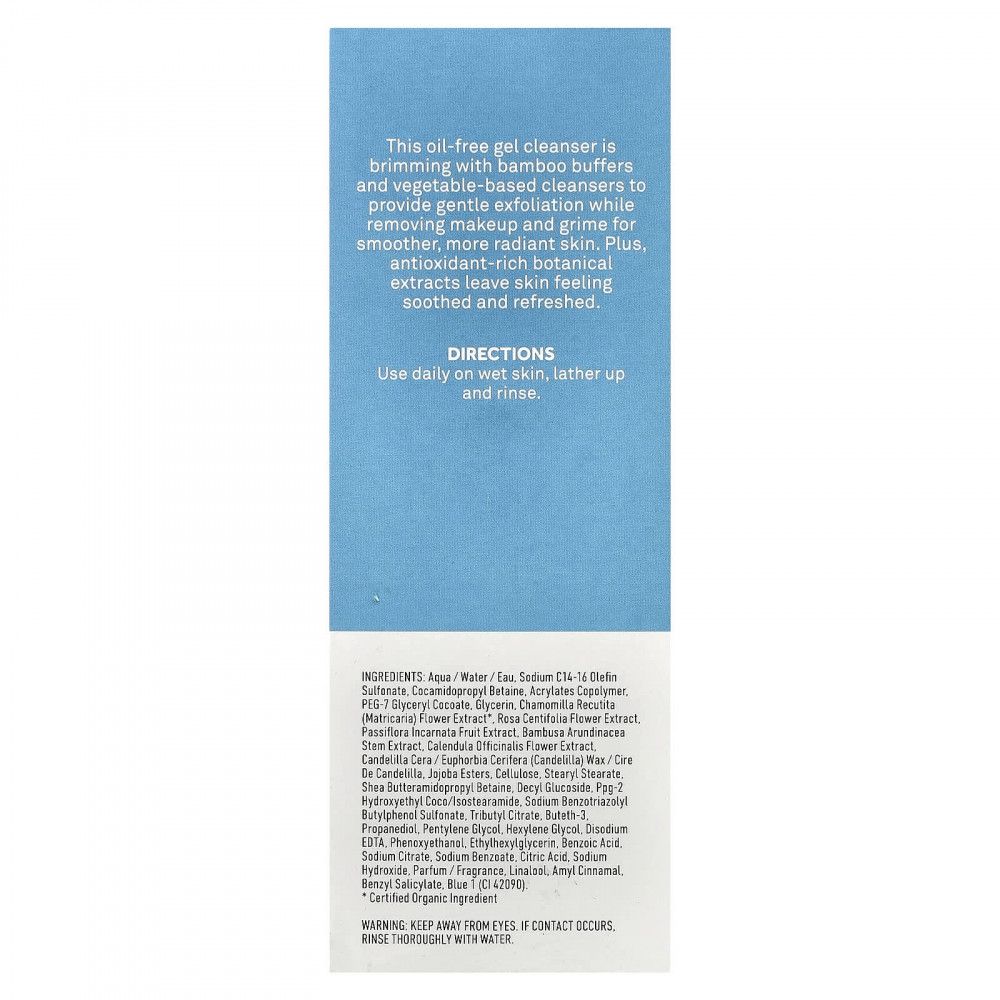 Это безмасляный очищающий гель с бамбуковыми буферами и очищающими средствами на растительной основе обеспечивает мягкое отшелушивание, удаляя макияж и грязь, делая кожу более гладкой и сияющей. Кроме того, богатые антиоксидантами растительные экстракты смягчают и освежают кожу.