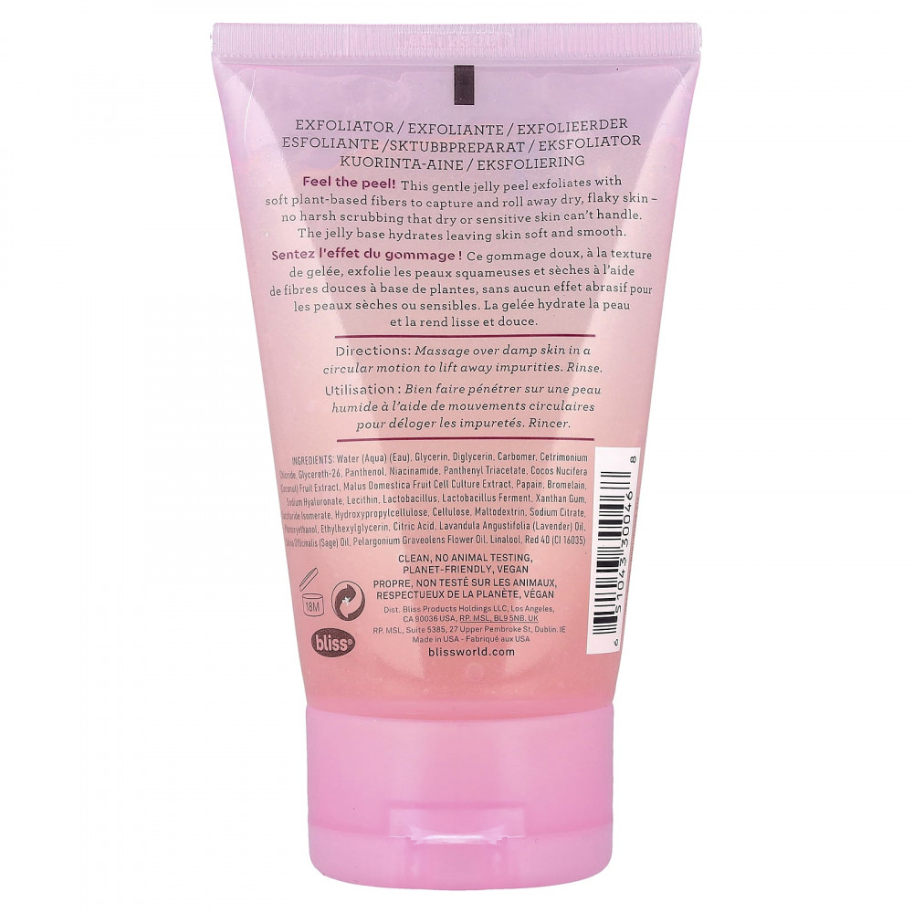 Почувствуйте кожуру! Этот нежный желейный пилинг с мягкими растительными волокнами захватывает и убирает сухую, шелушащуюся кожу. Никакого резкого скраба, с которым не справится сухая или чувствительная кожа. Желейная основа увлажняет кожу, делая ее мягкой и гладкой.