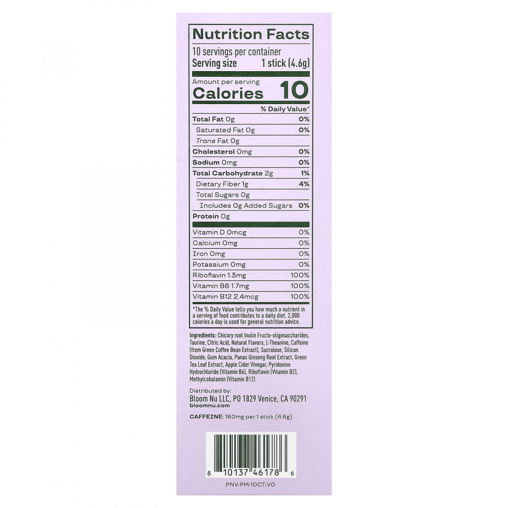 Фруктоолигосахариды инулина из корня цикория, таурин, лимонная кислота, натуральные ароматизаторы, L-теанин, кофеин (из экстракта зеленых кофейных зерен), сукралоза, диоксид кремния, аравийская камедь, экстракт корня женьшеня (Panax ginseng), экстракт листьев зелёного чая, яблочный уксус, пиридоксина гидрохлорид (витамин B6), рибофлавин (витамин B2), метилкобаламин (витамин B12).
