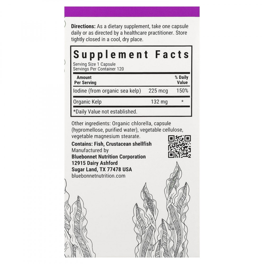 Йод из атлантических морских водорослей от Bluebonnet содержит богатые питательными веществами органические морские водоросли, которые выращены и собраны вручную морскими фермерами в Новой Зеландии. Бурые водоросли атлантического моря — богатый источник йода, который является важным минералом для поддержания здоровья щитовидной железы.
