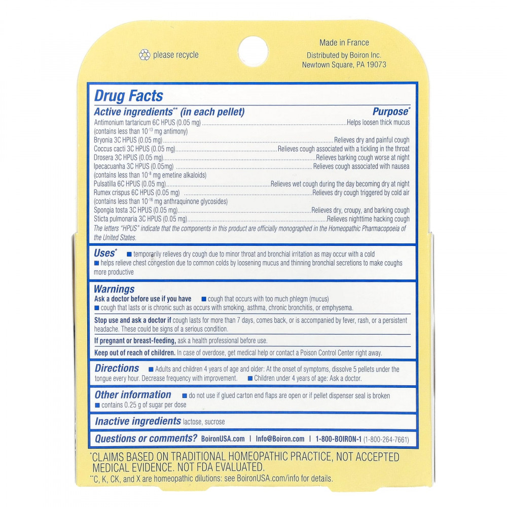 | Сурьма тартарная (Antimonium tartaricum) 6C HPUS (0,05 мг) (содержит менее10-13 мг сурьмы) | Помогает разжижить густую слизь |