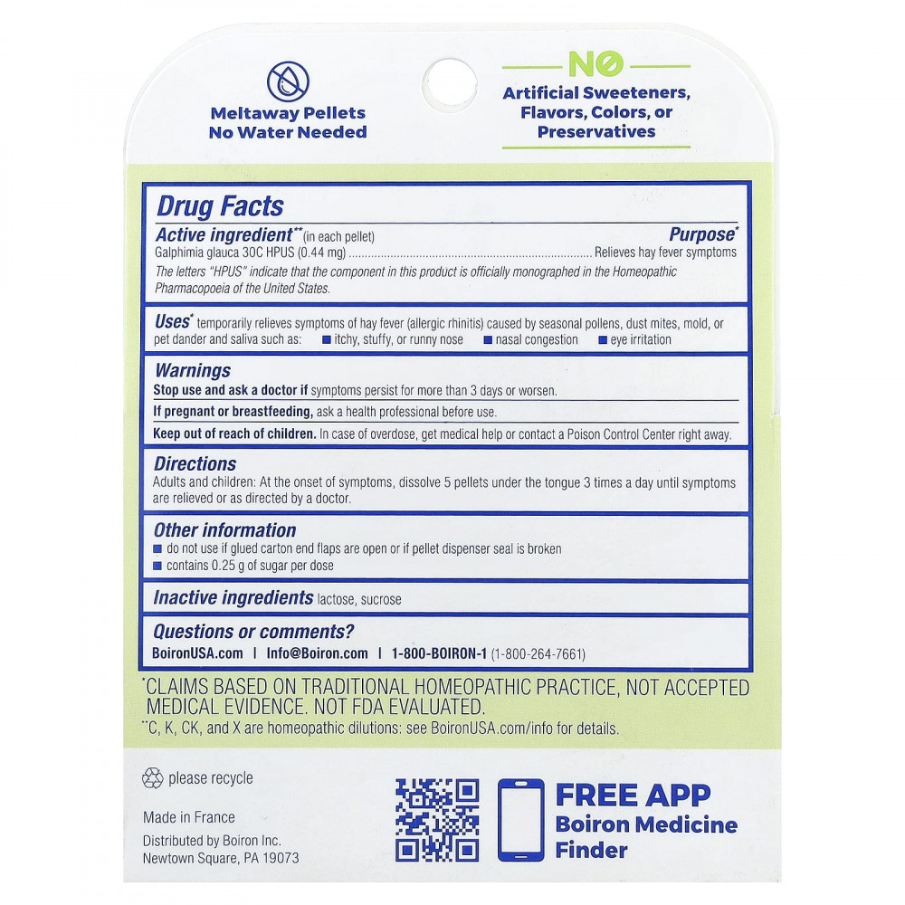 | Galphimia glauca 30C HPUS (0,44 мг) | Снимает симптомы сенной лихорадки |