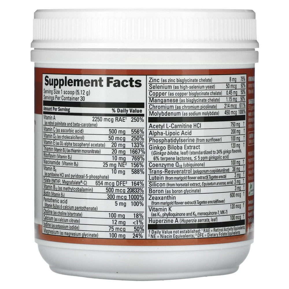Порошок BRIGHT MINDS™, содержащий более 30 витаминов, минералов, аминокислот, травяных концентратов и нутрицевтиков, является идеальным мультивитамином для поддержки памяти.