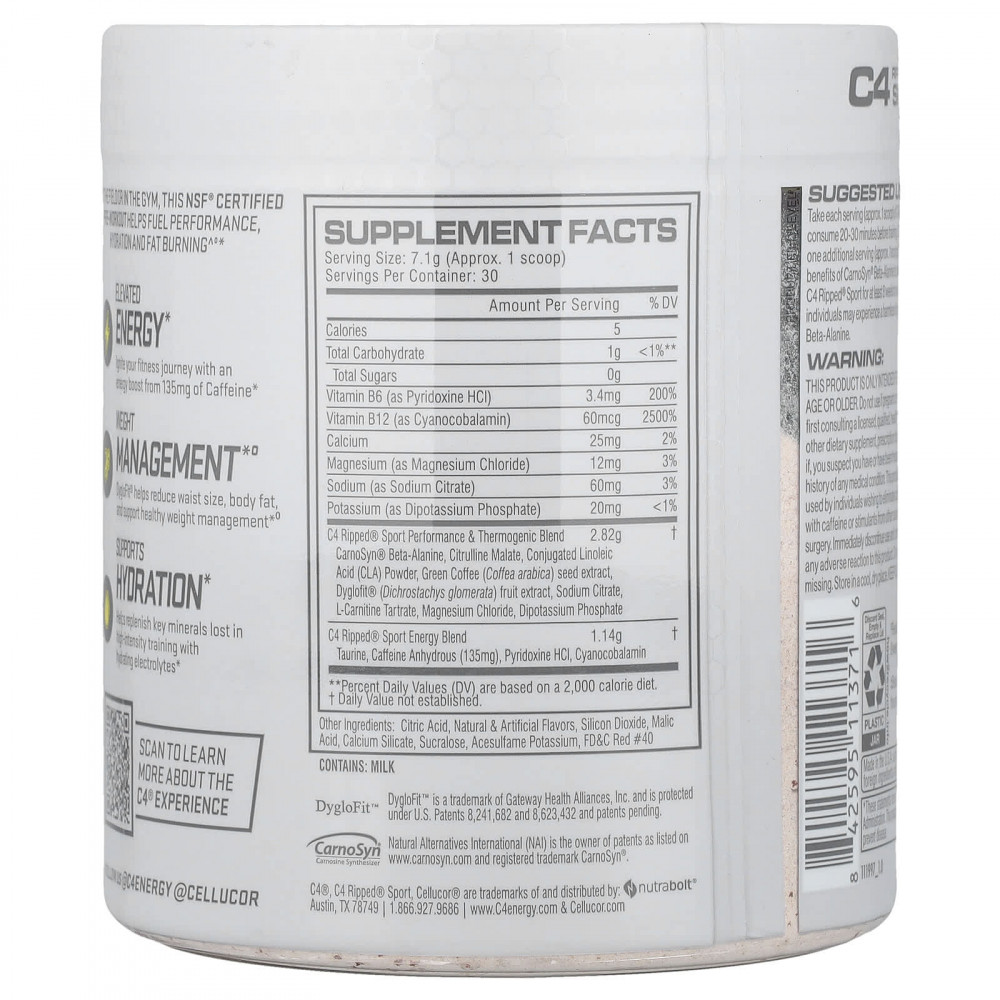 Принимайте C4 Ripped® Sport не менее 8 недель, чтобы ощутить максимальные преимущества.
