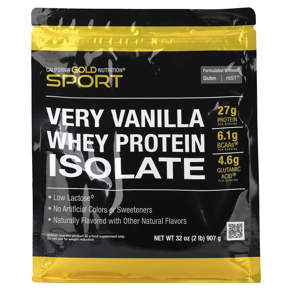 California Gold Nutrition Sport Изолят сывороточного протеина с ванильным вкусом содержит более 25 граммов протеина и 6 граммов BCAA в каждой порции. Эта сыворотка с низким содержанием лактозы проходит многоэтапный процесс извлечения путем холодной микрофильтрации на основе ультрасовременной мембранной технологии.