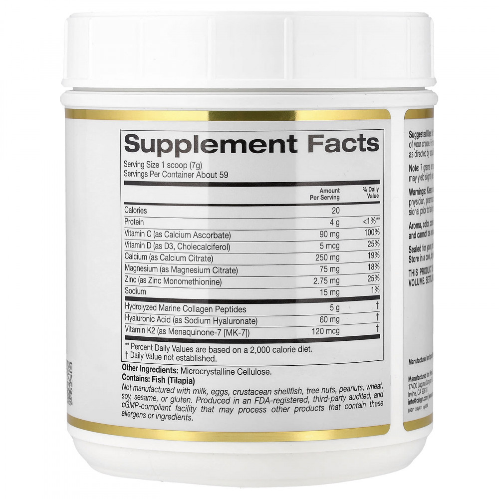 Витамин C (в виде аскорбата кальция), витамин D (в виде витамина D3, холекальциферола), кальций (в виде цитрата кальция), Магний (в виде цитрата магния), Цинк (в виде монометионина цинка), Натрий, пептиды гидролизованного морского коллагена, гиалуроновая кислота (в виде гиалуроната натрия)., Витамин K2 (в виде менахинона-7 [МК-7])