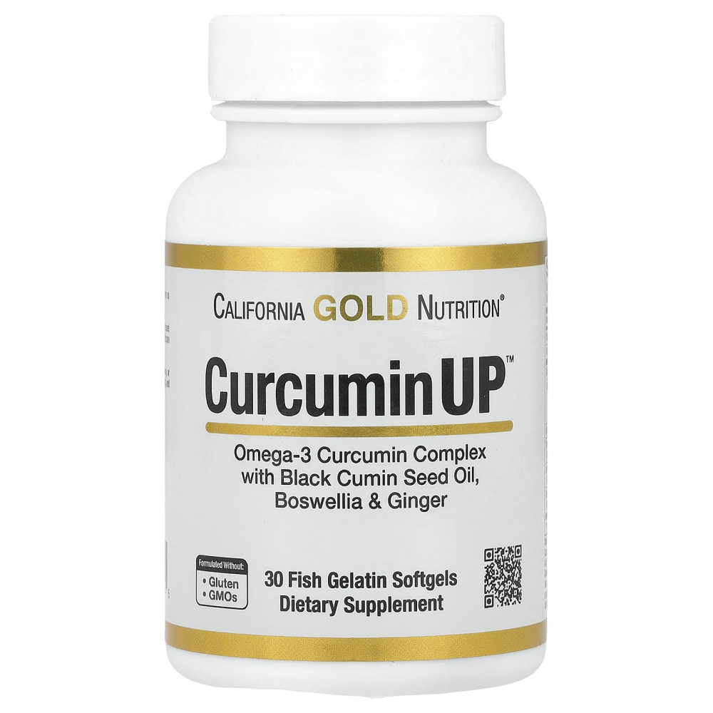 CurcuminUP™ от California Gold Nutrition® — это улучшенное средство для поддержки нормальной воспалительной реакции с концентратом рыбьего жира, содержащее омега-3 жирные кислоты, масло из семян чёрного тмина, экстракты куркумы, босвеллии и имбиря в капсулах из рыбьего желатина.