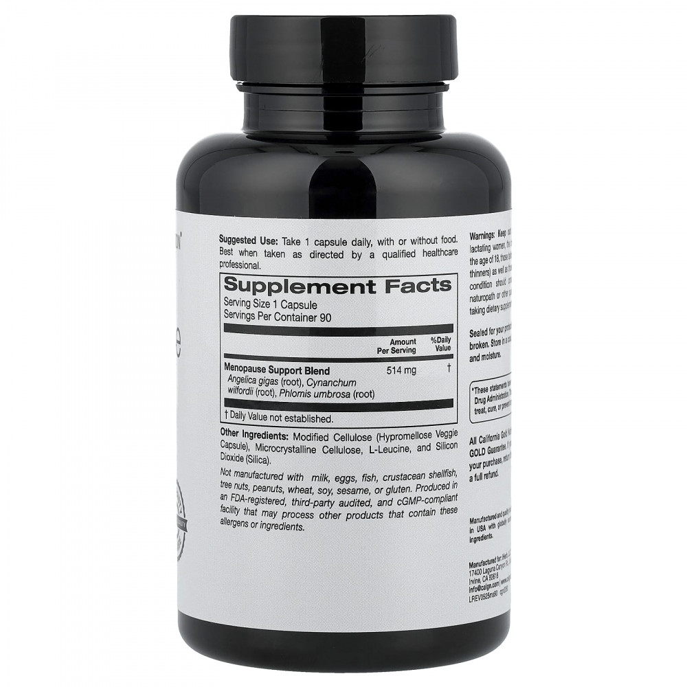 Добавка для поддержки при менопаузе от California Gold Nutrition® Beauty содержит EstroG-100® и три экстракта корней растений для естественного облегчения распространённых симптомов менопаузы, включая приливы и ночную потливость*.