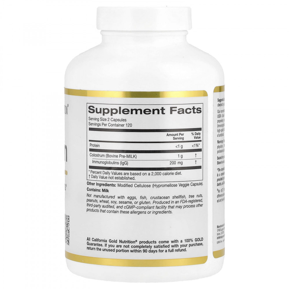 Молозиво является популярной пищевой добавкой, поскольку оно содержит важные питательные вещества, такие как аминокислоты, жиры и фосфолипиды. Молозиво от California Gold Nutrition® содержит молозиво, полученное от коров класса A (по оценке Министерства сельского хозяйства США), и обрабатывается при низких температурах.