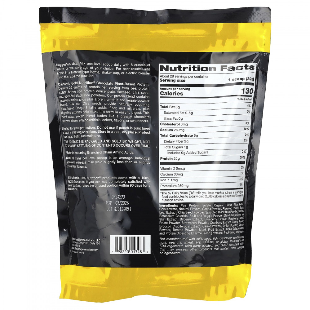 California Gold Nutrition ® СпортРастительный белок содержит белок и аминокислоты полностью растительного происхождения. Благодаря натуральному ароматизатору вы сможете создать восхитительный сливочный коктейль со вкусом шоколада.