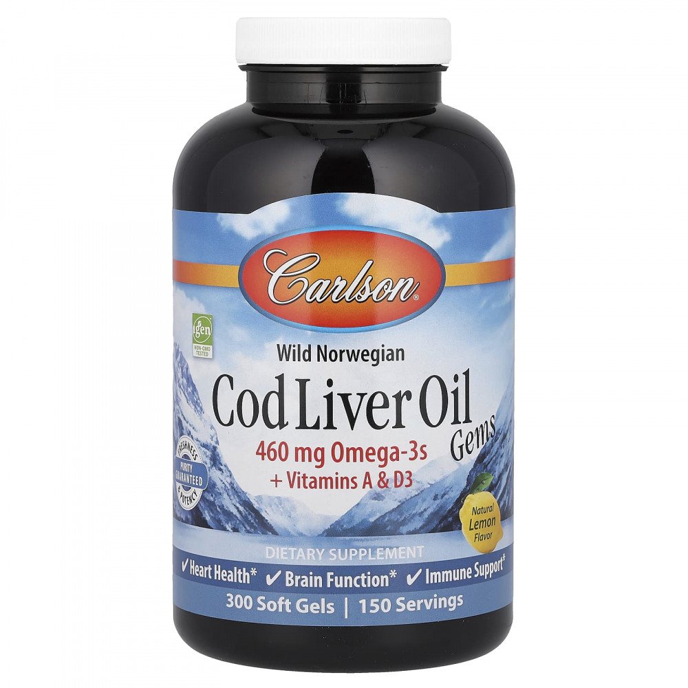 Капсулы с жиром печени трески содержат 460 мг омега-3, а также витамины A и D3. Полезные омега-3 кислоты, ЭПК и ДГК, поддерживают здоровье сердечно-сосудистой системы, когнитивные функции и иммунитет. Жир печени трески в капсулах производится из арктической трески высочайшего качества, выловленной у побережья Норвегии, с помощью традиционного экологичного метода.