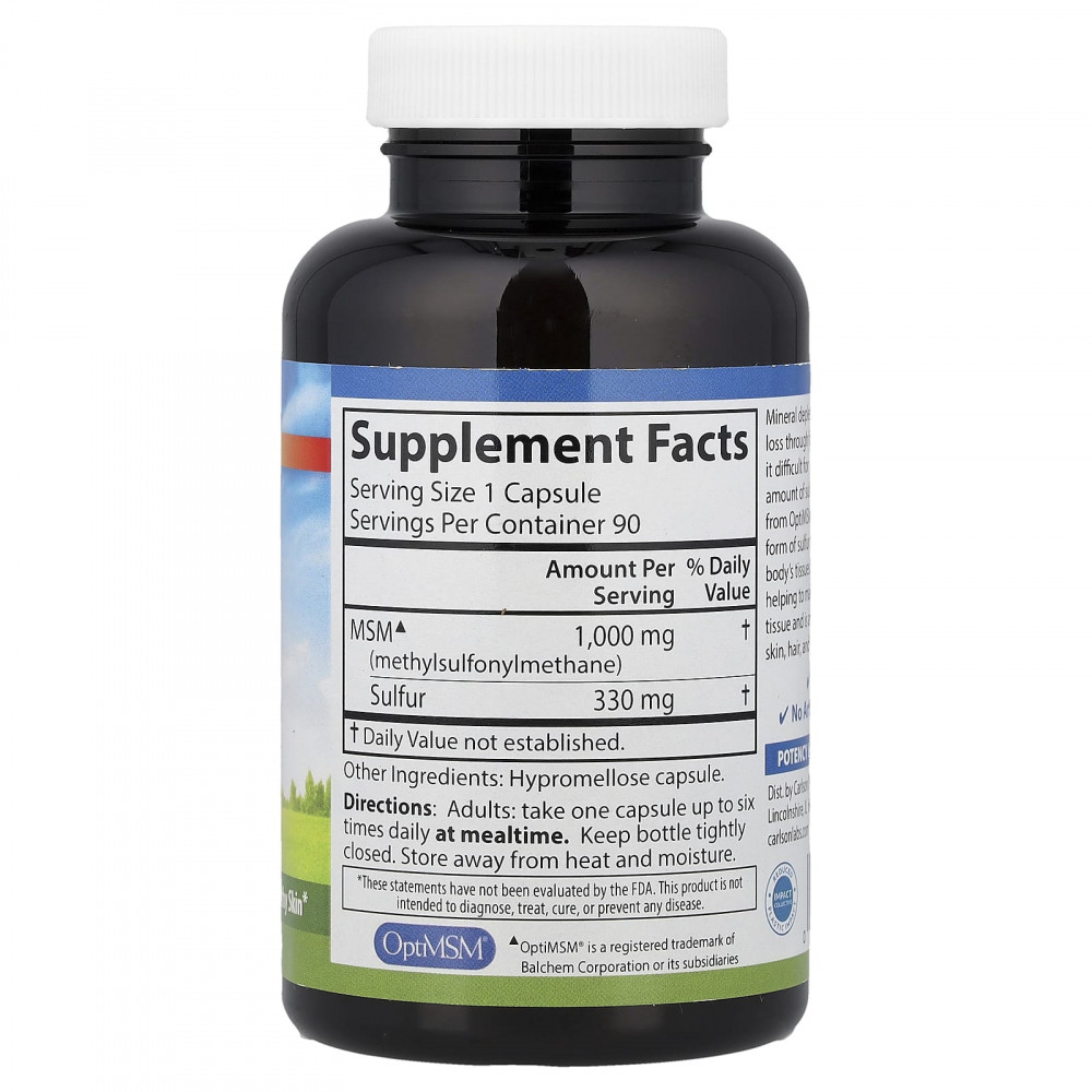 Истощение запаса минералов в почве и потеря минералов при приготовлении пищи затрудняют получение достаточного количества серы. МСМ и сера Carlson от OptiMSM® — это форма серы с высокой биодоступностью, которая содержится во многих тканях организма. Она способствует здоровью суставов, помогая поддерживать здоровье соединительной ткани, и является важным компонентом белков кожи, волос и ногтей.