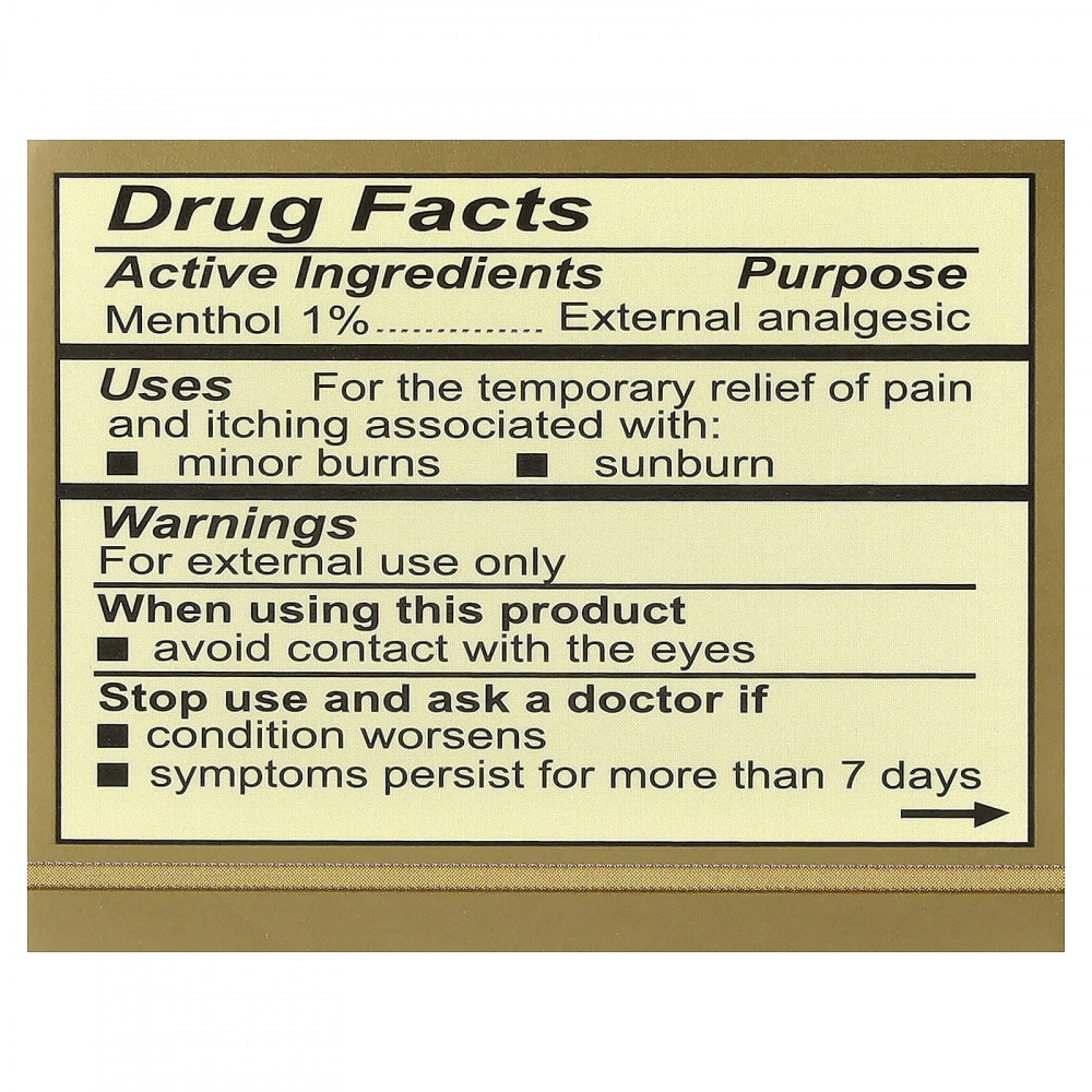 Этот натуральный успокаивающий бальзам — отличное средство, которое временно облегчает боль и зуд, вызванные незначительными ожогами. Этот продукт отлично подходит для ухода за кожей после солнечных ожогов.