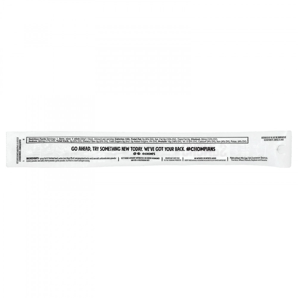 Травяной откорм и г)отовая говядина, вода, менее 2% следующих ингредиентов: инкапсулированная молочная кислота, морская соль, порошок из культивированного сельдерея (порошок из сельдерея, морская соль), порошок из вишни, чесночный порошок, упакованные в говяжью коллагеновую оболочку.