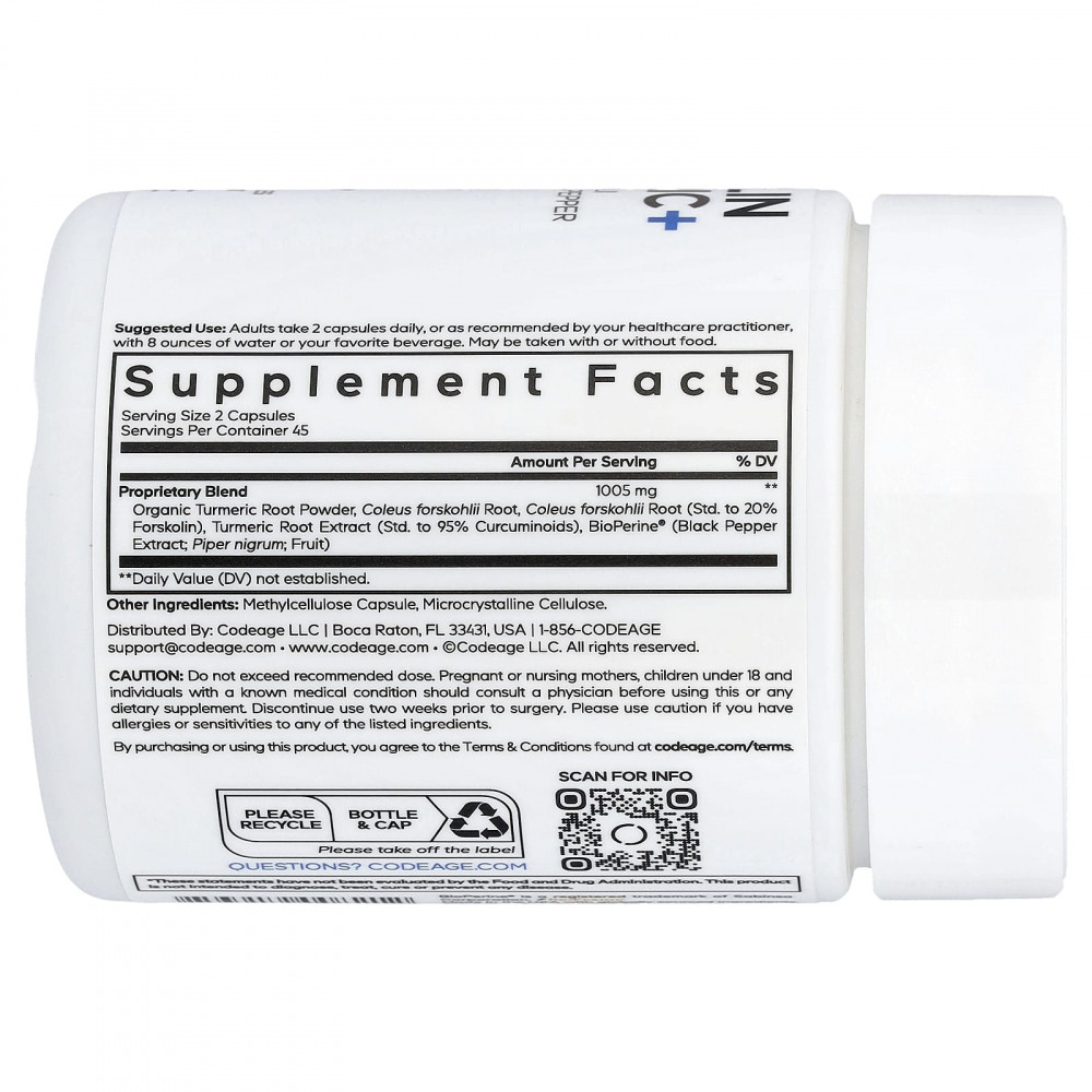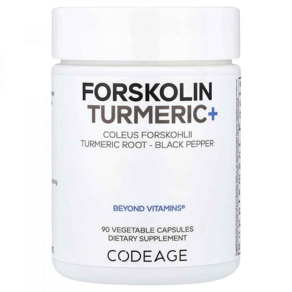 Forskolin Turmeric+ от CodeAge сочетает в себе форсколин, куркуму и черный перец BioPerine® в одном средстве. Эта добавка, обогащенная колеусом форсколии (Coleus forskohlii), стандартизированным до 20% форсколина, и куркумой, стандартизированной до 95% куркуминоидов, представляет собой смесь тщательно отобранных ингредиентов. Каждый флакон обеспечивает 45-дневный запас добавки.