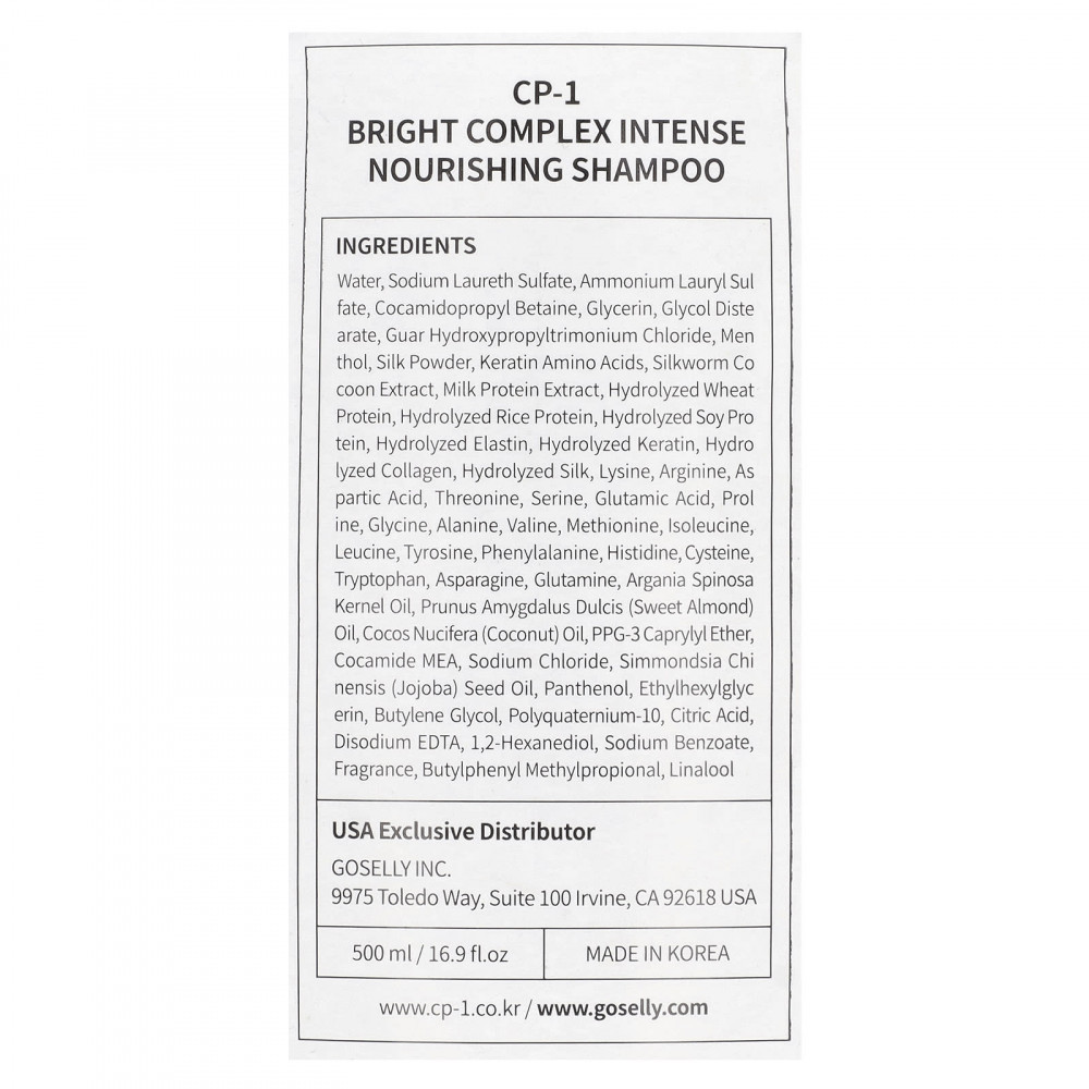 Вода, лауретсульфат натрия, лаурилсульфат аммония, кокамидопропилбетаин, глицерин, гликоль дистеарат, гуар гидроксипропилтримония хлорид, ментол, шёлковый порошок, аминокислоты кератина, экстракт кокона тутового шелкопряда, экстракт молочного протеина, гидролизованный протеин из пшеницы, гидролизованный рисовый протеин, гидролизованный соевый протеин, гидролизованный эластин, гидролизованный кератин, гидролизованный коллаген, гидролизованный шёлк, лизин, аргинин, аспарагиновая кислота, треонин, серин, глутаминовая кислота, пролин, глицин, аланин, валин, метионин, изолейцин, лейцин, тирозин, фенилаланин, гистидин, цистеин, триптофан, аспарагин, глутамин, аргановое масло (Argania spinosa), масло сладкого миндаля (Prunus amygdalus dulcis), кокосовое масло (Cocos nucifera), ППГ-3 каприлиловый эфир, кокамид МЭА, хлорид натрия, масло из семян жожоба (Simmondsia chinensis), пантенол, этилгексилглицерин, бутиленгликоль, поликватерниум-10, лимонная кислота, двунатриевая ЭДТК, 1,2-гександиол, бензоат натрия, отдушка, бутилфенил метилпропиональ, линалоол.