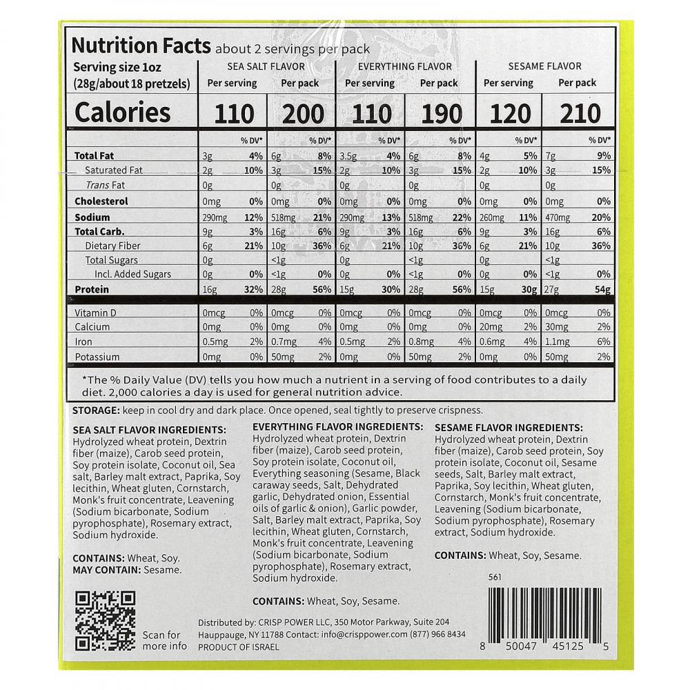 Ингредиенты кунжутного вкуса: Гидролизованный протеин пшеницы, клетчатка из декстрина (кукуруза), протеин из семян рожкового дерева, изолят соевого белка, кокосовое масло, семена кунжута, соль, экстракт ячменного солода, паприка, соевый лецитин, пшеничный глютен, кукурузный крахмал, концентрат монахов, разрыхлитель (бикарбонат натрия, пирофосфат натрия), экстракт розмарина, гидроксид натрия.