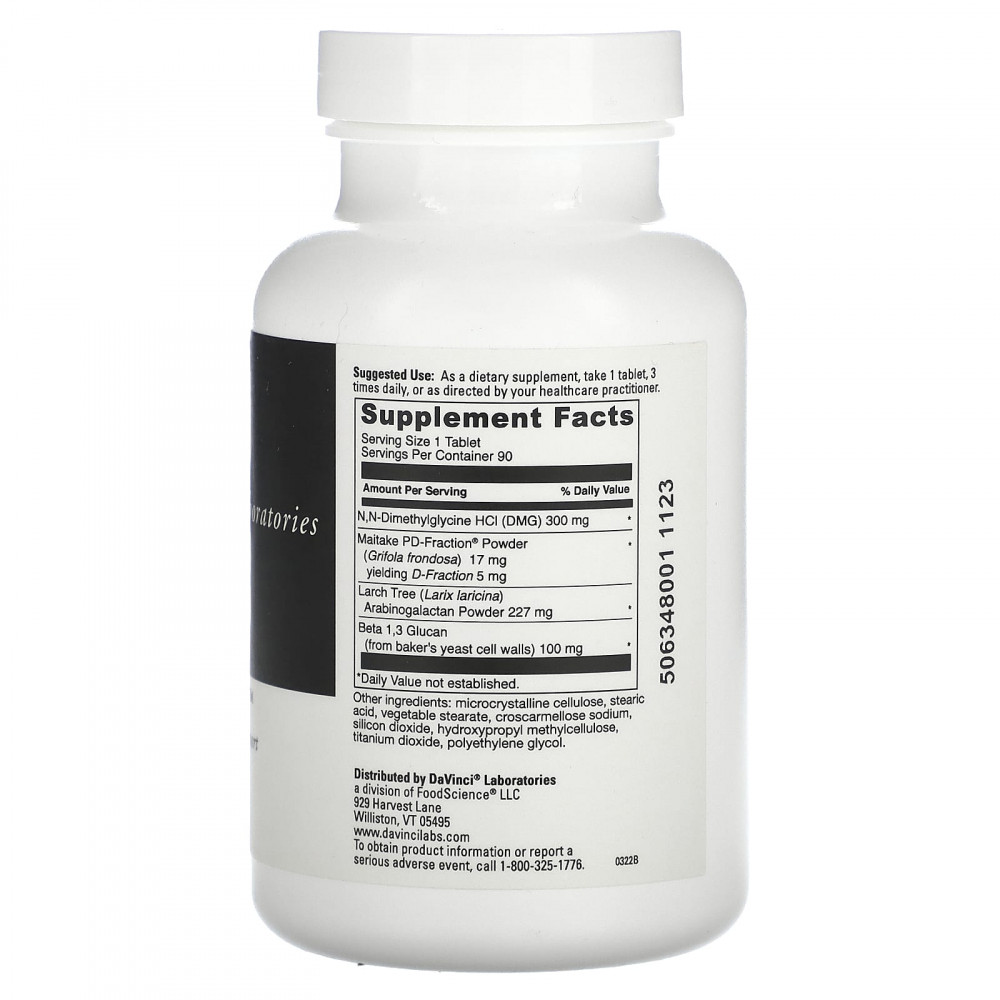 Immuno-DMG ™ - это усовершенствованная пищевая добавка, которая сочетает в себе 3 изученных продукта: Gluconic® DMG, Maitake D-Fraction® (экстракт грибов майтаке) и лиственница с бета-1,3-глюканами. Синергетическая и мощная смесь хорошо изученных питательных веществ в Immuno-DMG ™ была разработана специально для поддержки правильного функционирования иммунной системы.
