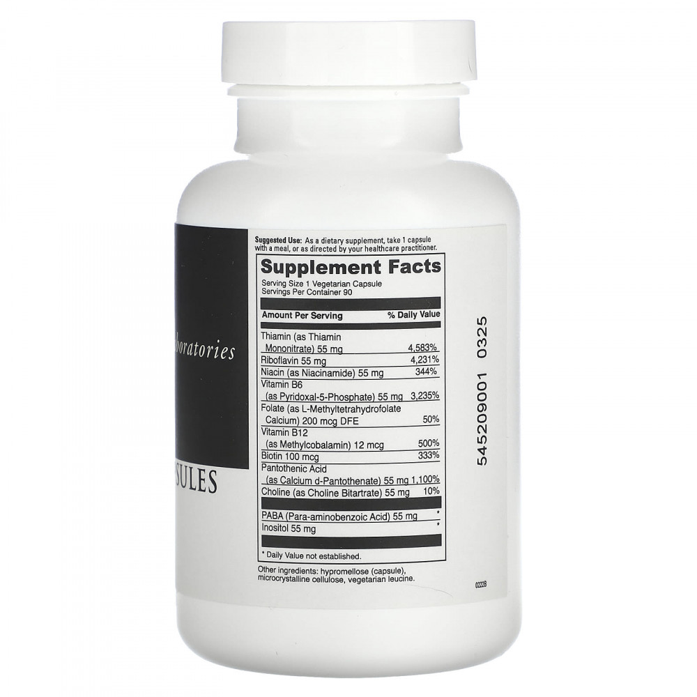 Добавка для снятия стресса содержит 11 витаминов группы B, включая фолат L-5 MTHF, для поддержки работы нервной системы, снижения раздражительности и расслабления.