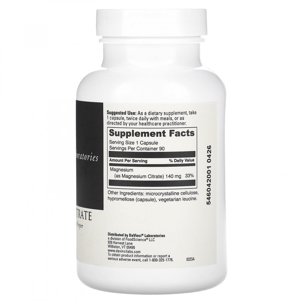 Пищевая добавка для поддержки нормальной работы нервов и мышц. Магний также помогает организму поддерживать правильный баланс pH, нормальное кровяное давление и нормальную температуру тела. Он участвует в углеводном и минеральном обмене и способствует усвоению кальция и калия. Каждая вегетарианская капсула содержит 870 мг цитрата магния, что соответствует 140 мг элементарного магния.