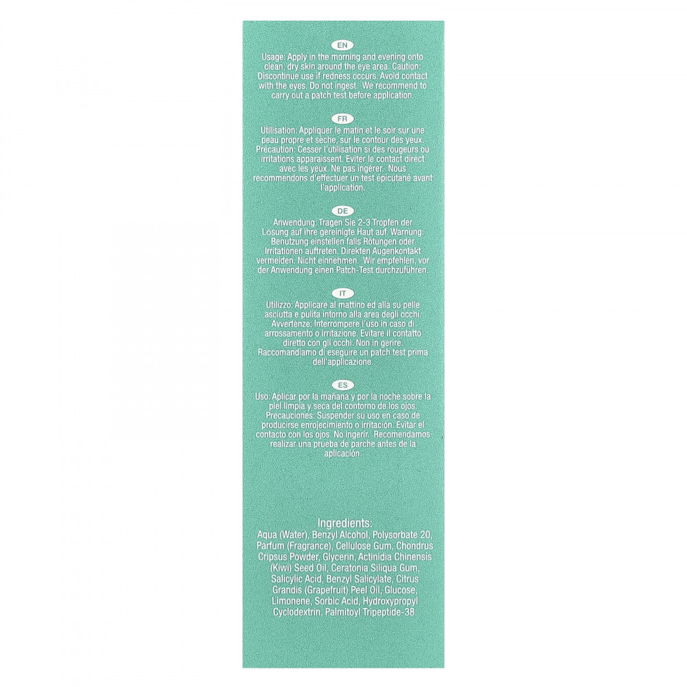 Вода, бензиловый спирт, полисорбат 20 отдушка (отдушка), целлюлозная камедь, порошок из ирландского мха (Chondrus crispus), глицерин, масло семян киви (Actinidia chinensis), камедь кератонии (Ceratonia siliqua), салициловая кислота, бензилсалицилат, масло из цедры грейпфрута (Citrus grandis), глюкоза, лимонен, сорбиновая кислота, гидроксипропил циклодекстрин, пальмитоил трипептид-38.