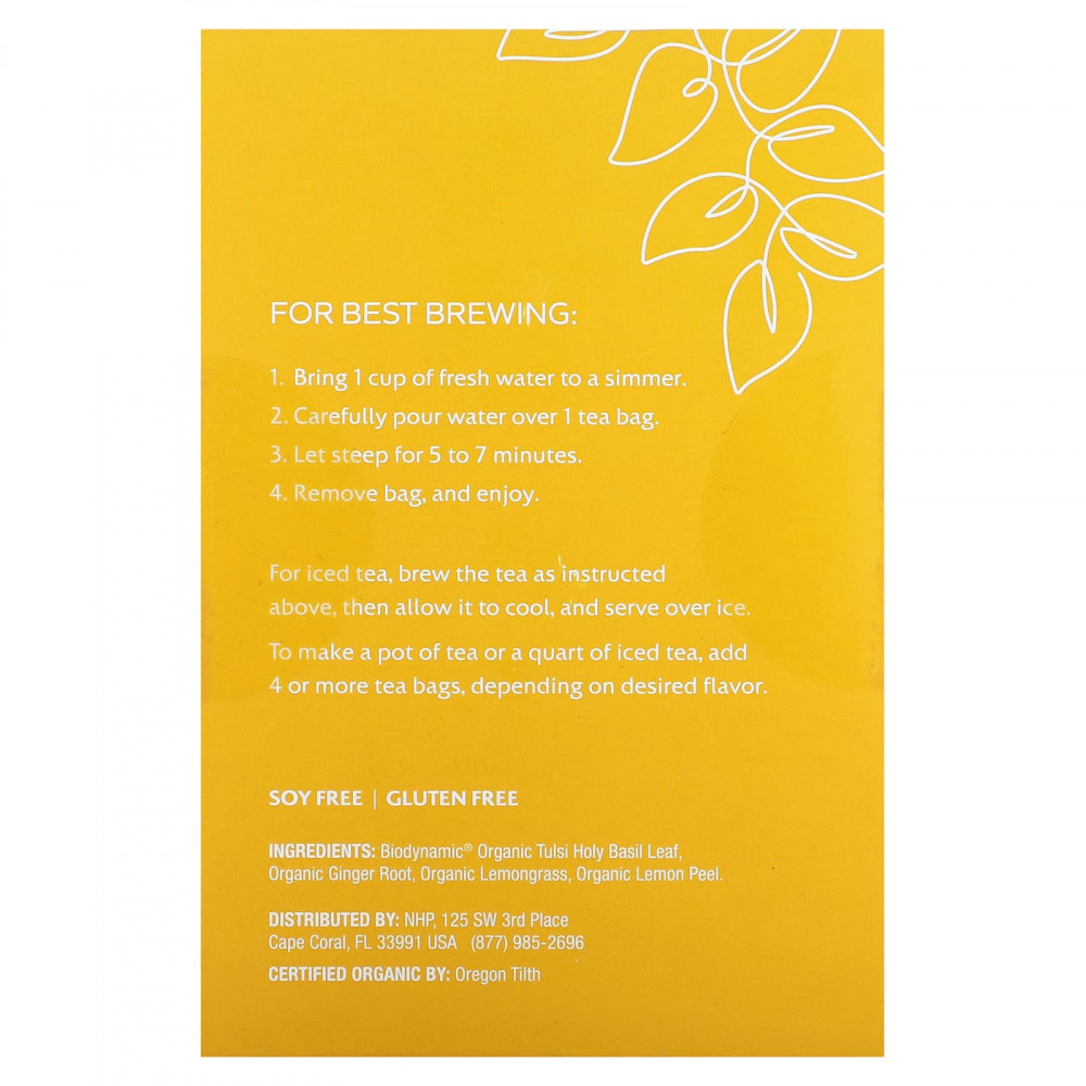 Листья органического базилика священного тулси Biodynamic®, корень органического имбиря, органический лемонграсс, органическая цедра лимона.