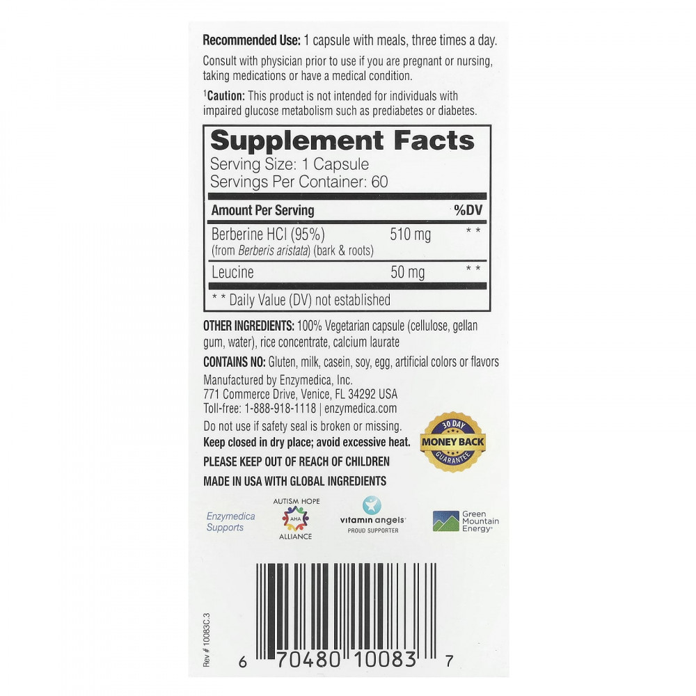 Берберин Enzymedica стандартизирован для максимальной эффективности и получен из барбариса.