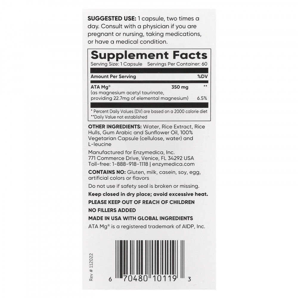 ATA MgⓇ — это запатентованная форма магния, в которой этот мощный минерал сочетается с таурином, аминокислотой, используемой организмом для передачи ионов магния в клетки.