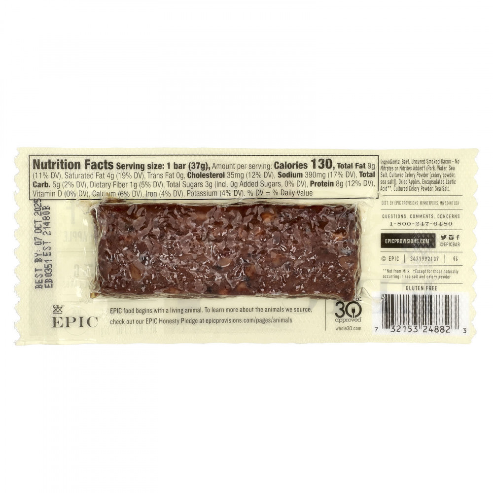 Батончик Whole 30, отвечающий требованиям 100% говядины травяного откорма, с аппетитной смесью из неотвержденного бекона и сушеных яблок, представляет собой идеальное сочетание сладкого и соленого.