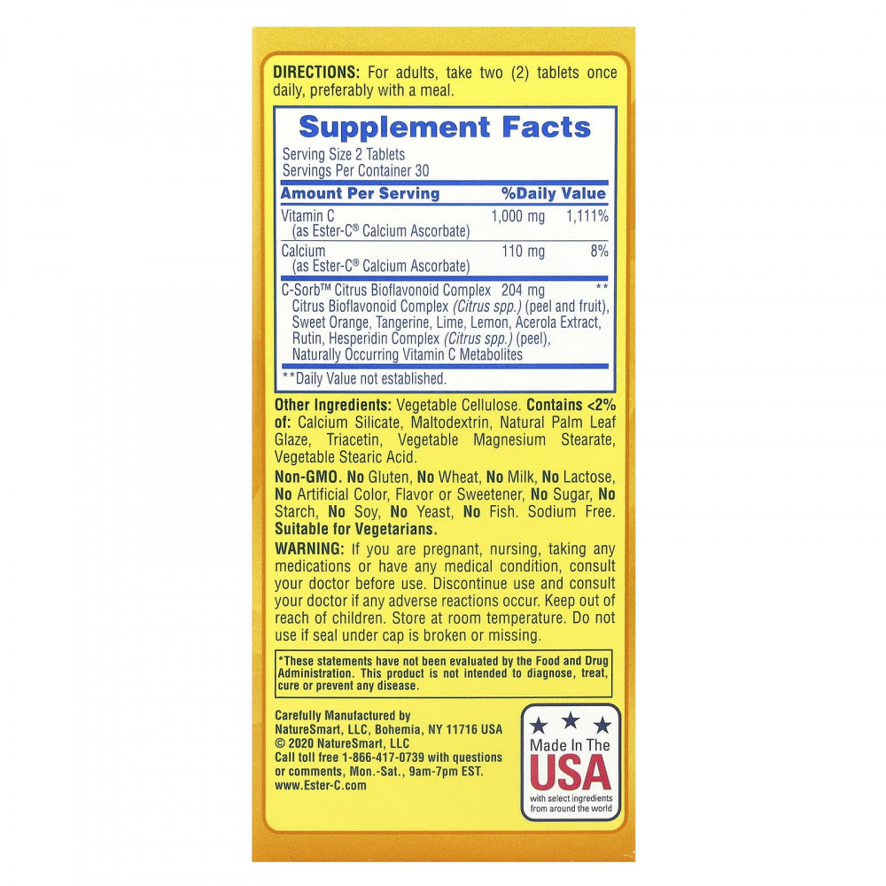 Клинически доказано, что витамин C Ester-C® действует дольше, чем обычный витамин C. Это связано с тем, что витамин C Ester-C® тщательно разработан, чтобы содержать метаболиты витамина C, те же метаболиты, которые естественным образом вырабатываются вашим организмом и помогают улучшить удержание витамин С из лейкоцитов, жизненно важной части вашей иммунной системы. Таким образом, после приема суточной дозы витамина С Ester-C® он попадает в лейкоциты и остается там в течение 24 часов. Витамин C также способствует здоровью верхних дыхательных путей. Кроме того, Ester-C® Vitamin C производится без химических веществ, нейтрализующих pH, что означает, что он не кислый и нежно воздействует на желудок. Ester-C® - это поддержка, на которую вы можете рассчитывать 24/7!