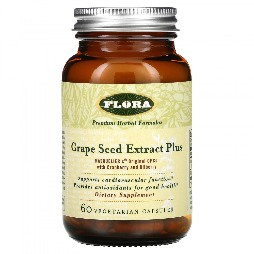 Экстракт виноградных косточек плюс от Flora содержит натуральные антиоксиданты и экстракт виноградных косточек аутентичного комплекса OPC Masquelier™. Комплекс OPC Masquelier™ соответствует высочайшим стандартам качества и биодоступности олигомерных проантоцианидинов. Экстракт черники высшего качества и порошок клюквы от Flora дополняют эту смесь биофлавоноидов полного спектра. Экстракт виноградных косточек плюс поддерживает сердечно-сосудистую функцию и содержит антиоксиданты для поддержания хорошего здоровья.