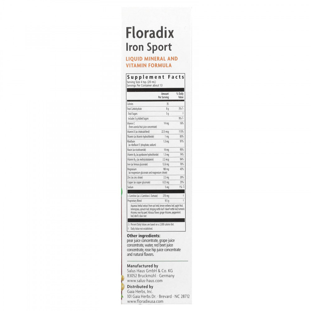 Floradix Iron Sport содержит отборные травы и концентраты фруктовых соков, обеспечивающие приятный вкус.