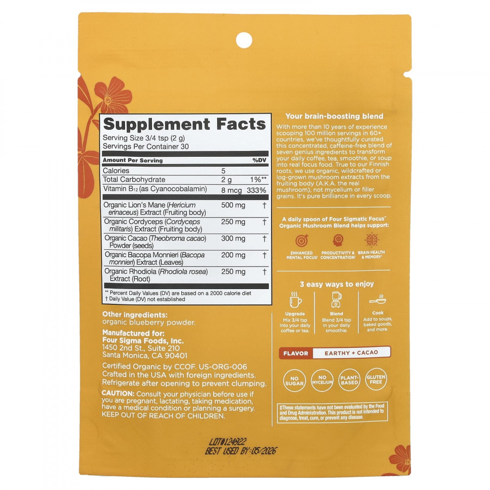 Ежедневная мерная ложка органической смеси грибов Four Sigmatic Focus™ помогает поддерживать: