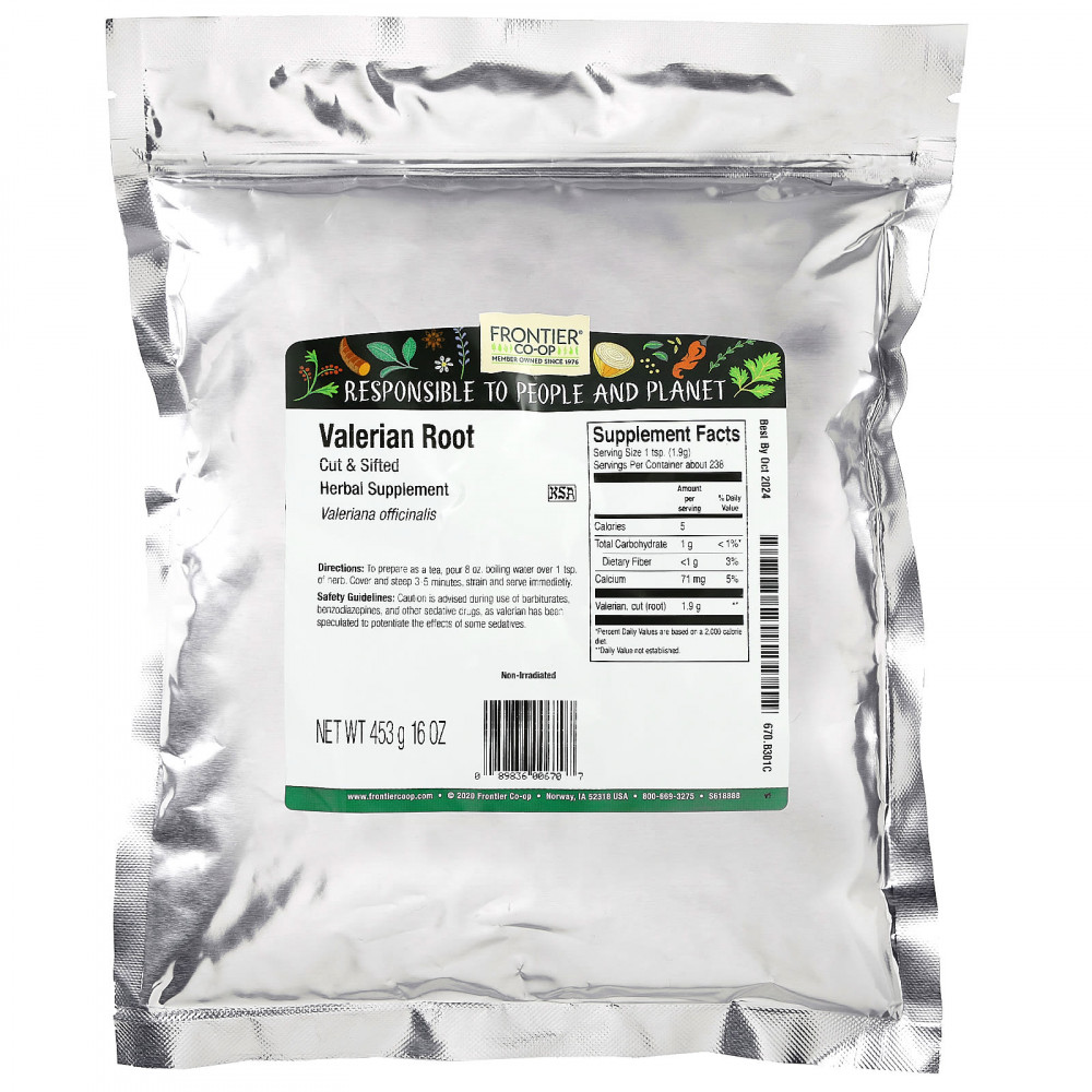 Органическая добавка из США — Frontier Co-op Порошок из корня валерианы выращивается и собирается в США органическим способом. Он не подвергается облучению и кошерный продукт. Ни на одном этапе процесса выращивания не используются добавки или химикаты.