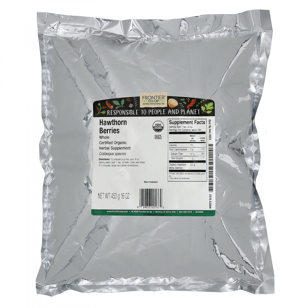Ягоды боярышника Frontier Co-op используются в качестве тонизирующего средства с 19 века. Ягоды боярышника — это крошечные плоды кустов нескольких видов боярышника, произрастающих в Европе.